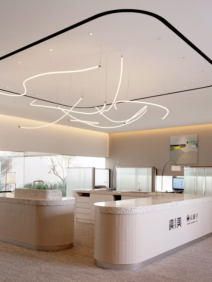 透過明亮色調與溫暖材質形塑出輕奢、洗鍊的居住氛圍。空間以天然石材作為視覺核心,結合木質、金屬細節與柔和燈光,呈現清爽而具深度的精品寓邸語彙。線條俐落而純粹,動線清晰,使空間感自然被放大。大面玻璃延伸室內外的視覺交流,營造開闊、通透的生活節奏。整體呈現現代、優雅、精準且具有國際感的生活美學,讓日常體驗中仍帶有高端飯店般的質地與輕盈感。