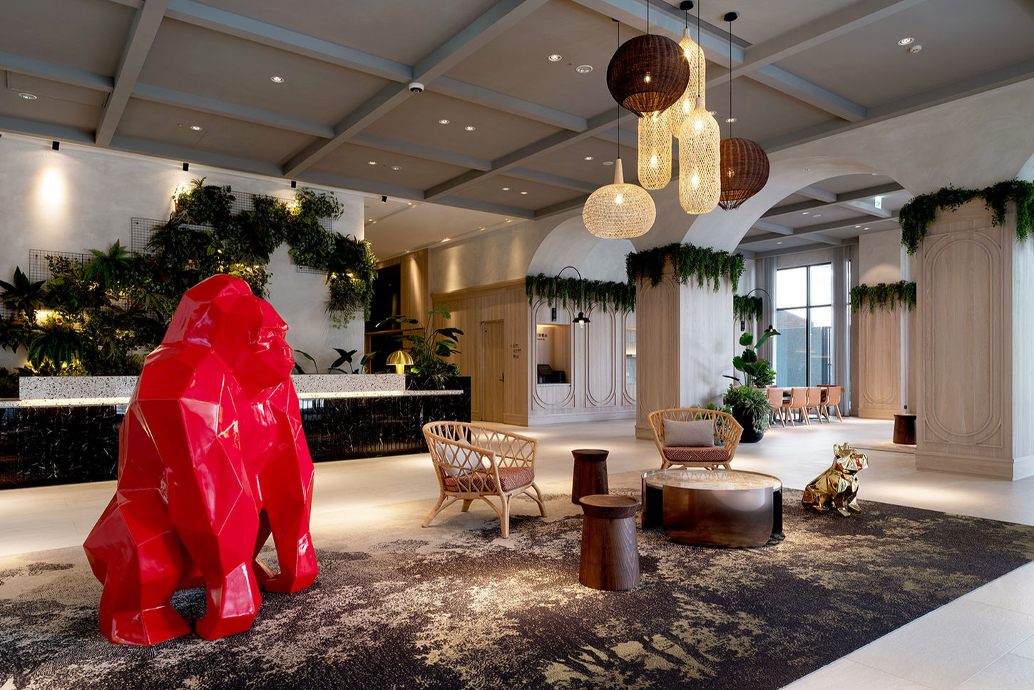 Located along one of the city’s key corridors, Jasper Villa Wuri is envisioned as an “urban oasis” that balances energy with quiet sophistication. Drawing inspiration from the vitality of the Amazon rainforest, the design integrates natural textures, animal motifs, and expressive colors to form a bold yet harmonious visual rhythm. The hotel’s spatial language reinterprets the intersection of nature and the urban environment, offering travelers a sense of immersive calm—an experience that feels like stepping through a vibrant jungle while remaining rooted in the refinement of a boutique hotel.